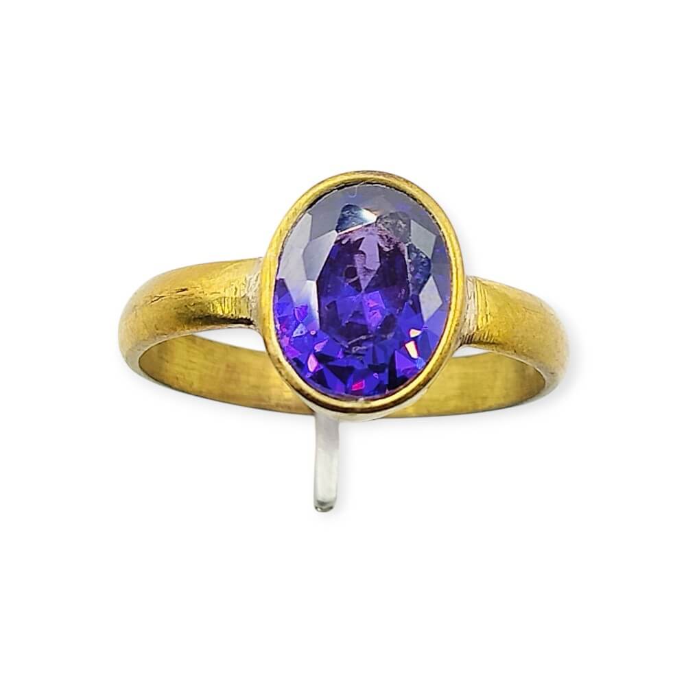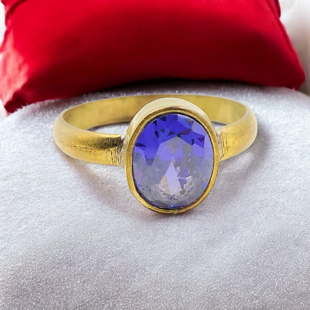 Step into confidence and calmness with this Blue Sapphire (Neelam) Stone Brass Ring, featuring a natural deep blue sapphire set in a polished brass band.