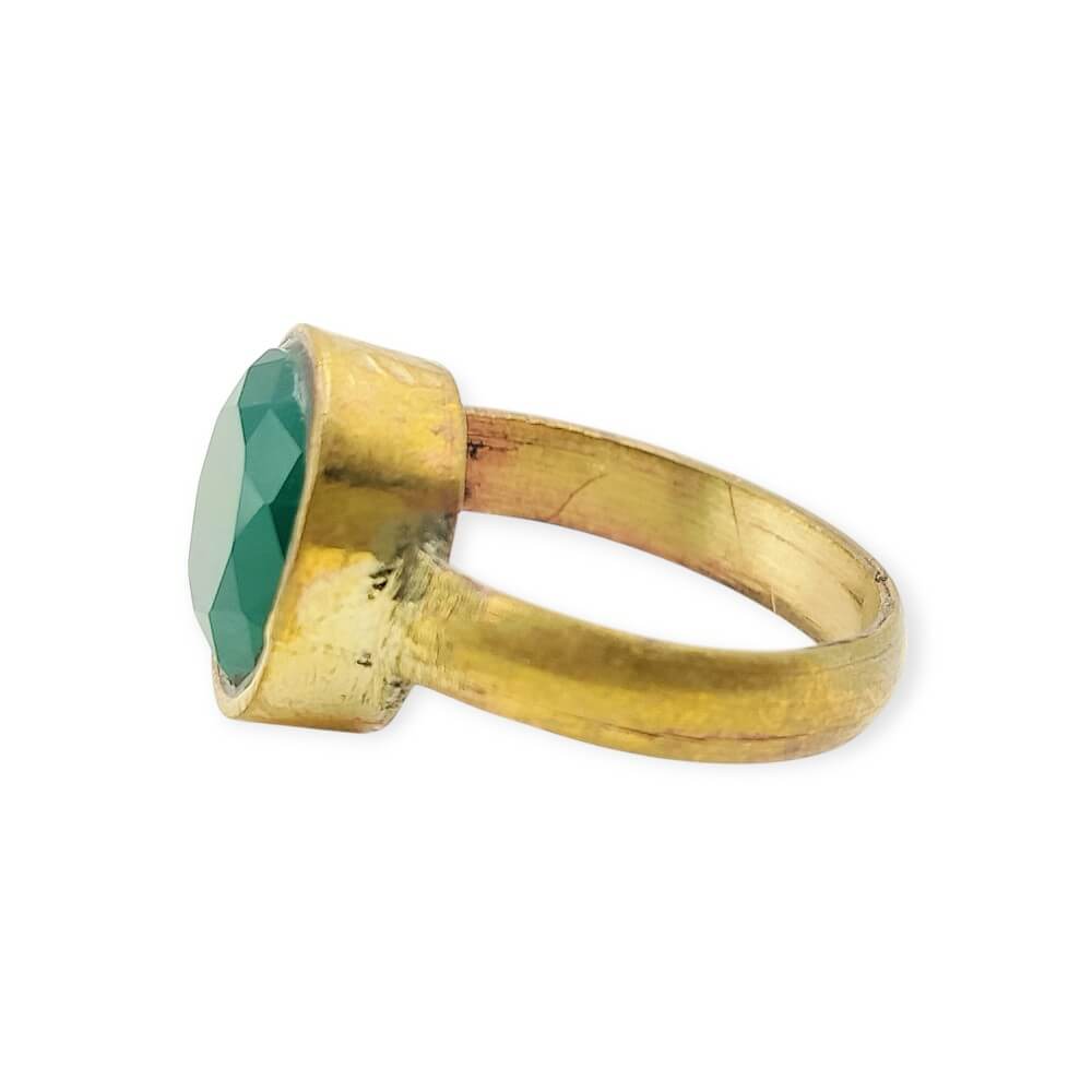 The deep green hue of the Emerald symbolizes growth, wisdom, and balance — making this ring an ideal choice for those seeking clarity, emotional stability, and success in life. The brass base amplifies the gem’s positive vibrations, creating a powerful combination of beauty and energy.