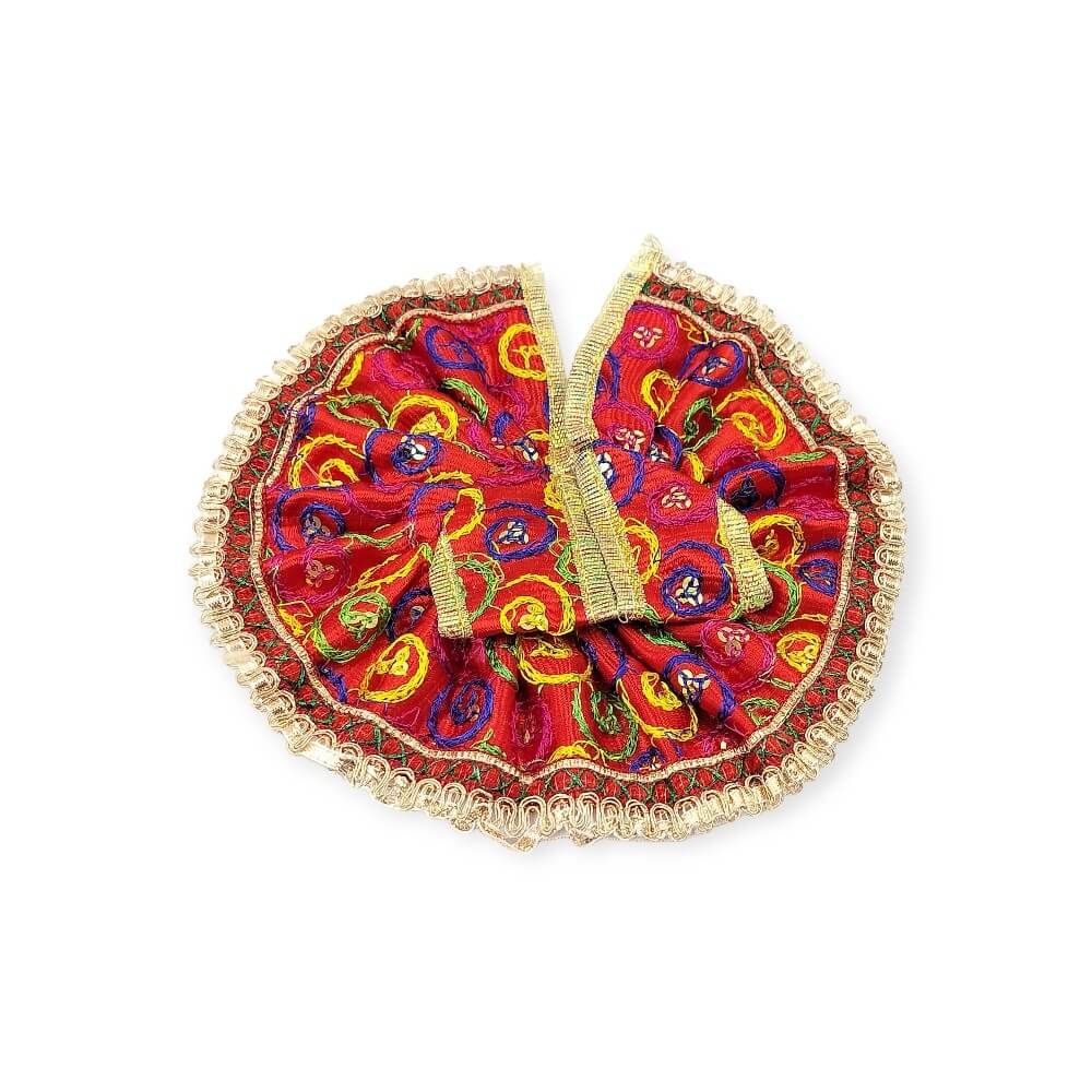 The poshak is tailored to fit Laddu Gopal idols of various sizes and features vibrant colors, delicate lacework, that enhance the beauty of your deity’s appearance.