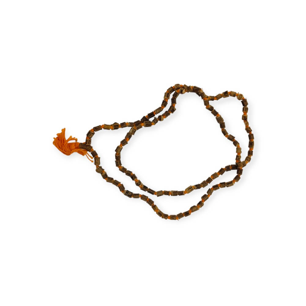 The Shyama Tulsi Mala is a sacred and spiritually charged rosary made from the holy Shyama (Black) Tulsi plant, revered for its divine association with Lord Krishna and Lord Vishnu. Each bead is carefully handcrafted to preserve its purity and healing energy. Known as a symbol of devotion, purity, and protection, this mala is ideal for japa (mantra chanting), meditation, or daily wear. The natural fragrance and divine vibrations of the Shyama Tulsi beads help purify the aura and bring peace to the mind and soul.