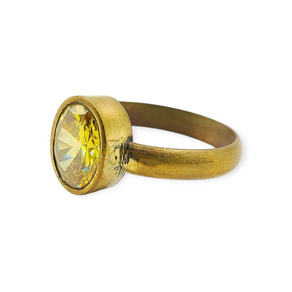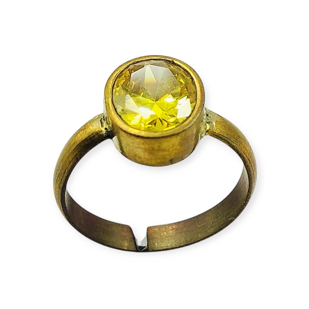 Experience elegance and positive energy with this Yellow Sapphire (Pukhraj) Stone Brass Ring, expertly crafted with a natural yellow sapphire set in a polished brass band.